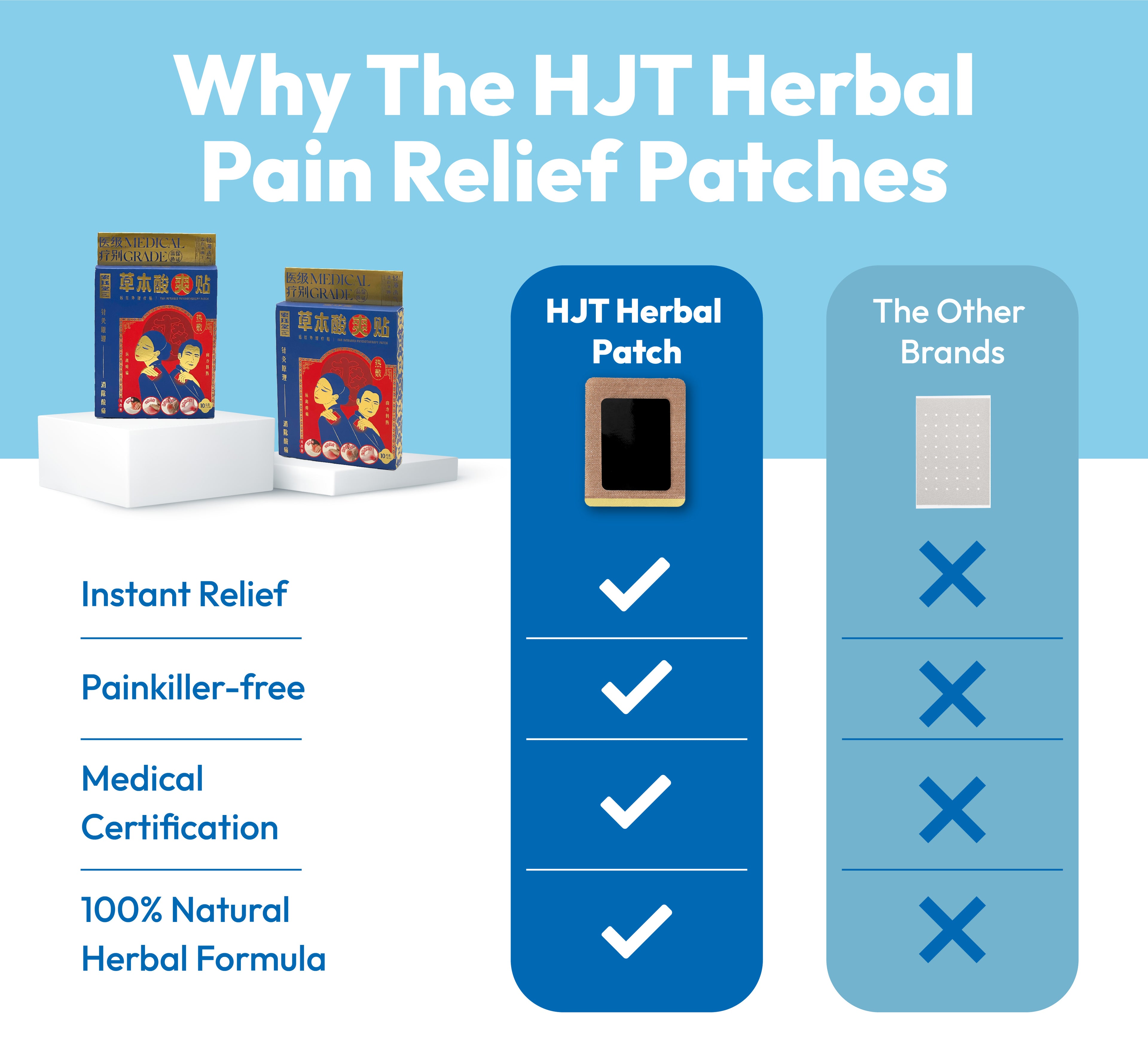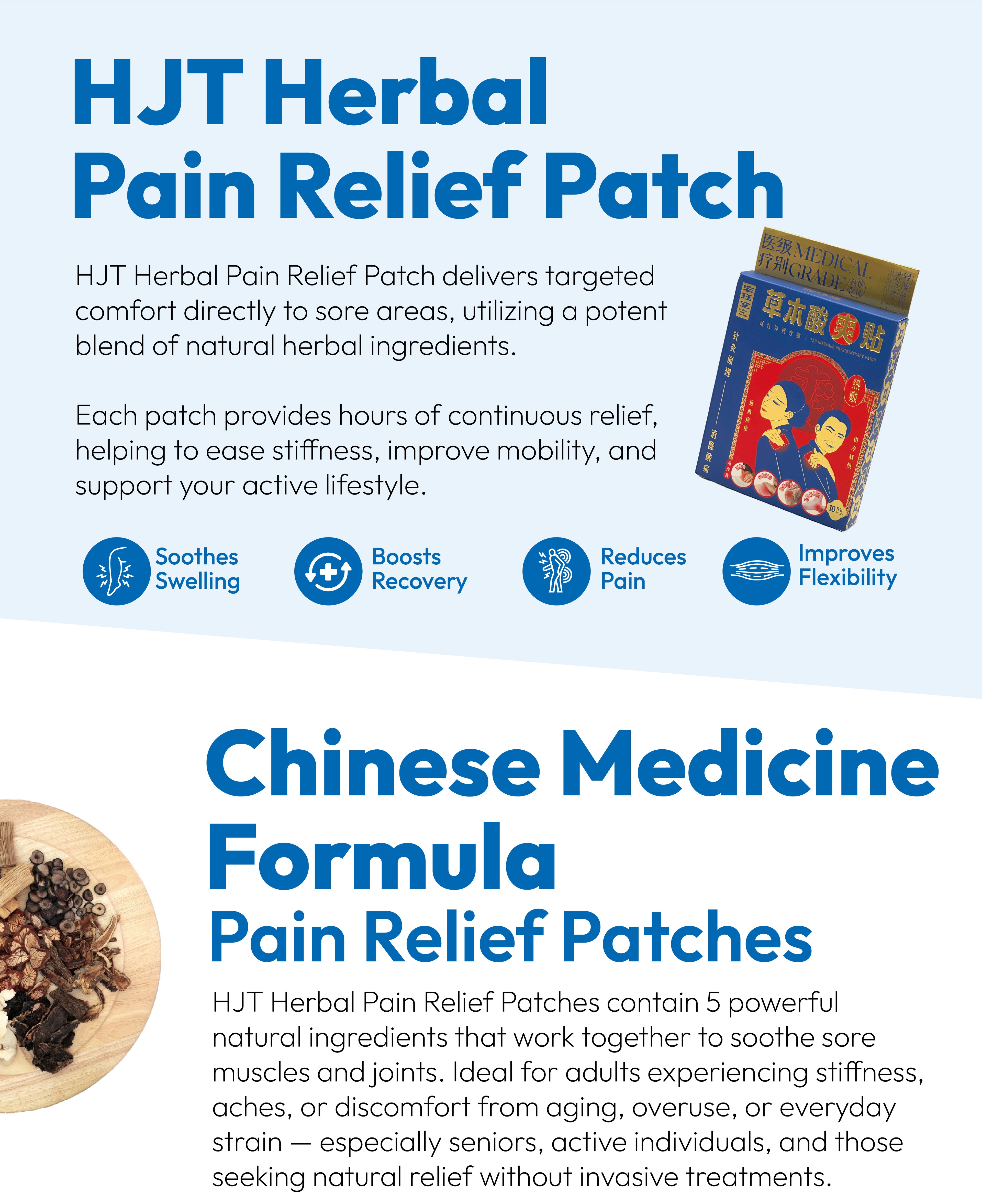 HJT Herbal Pain Relief Patch delivers natural soothing comfort with the power of traditional herbal extracts. Use it anywhere on your body to ease deep muscle tension, promote circulation, and calm everyday aches.