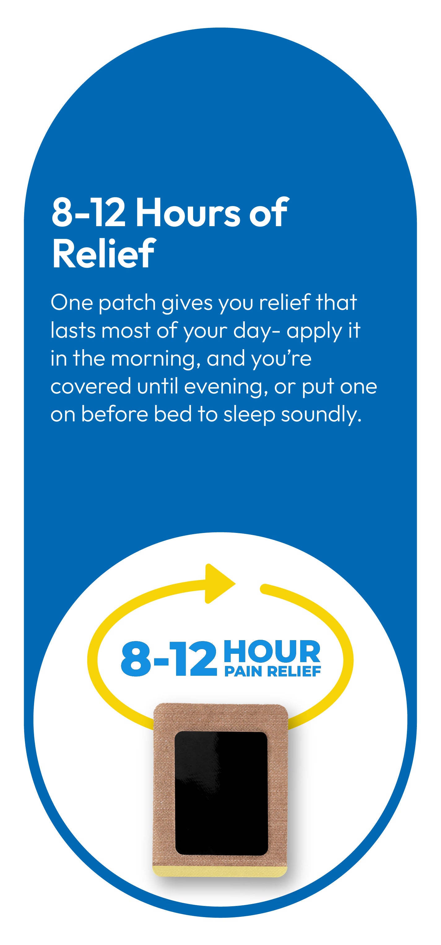 I have used the pain relief patches successfully for a while now. I just recently had a sore shoulder that was causing pain and discomfort. I put it on before bed and woke up to complete relief.